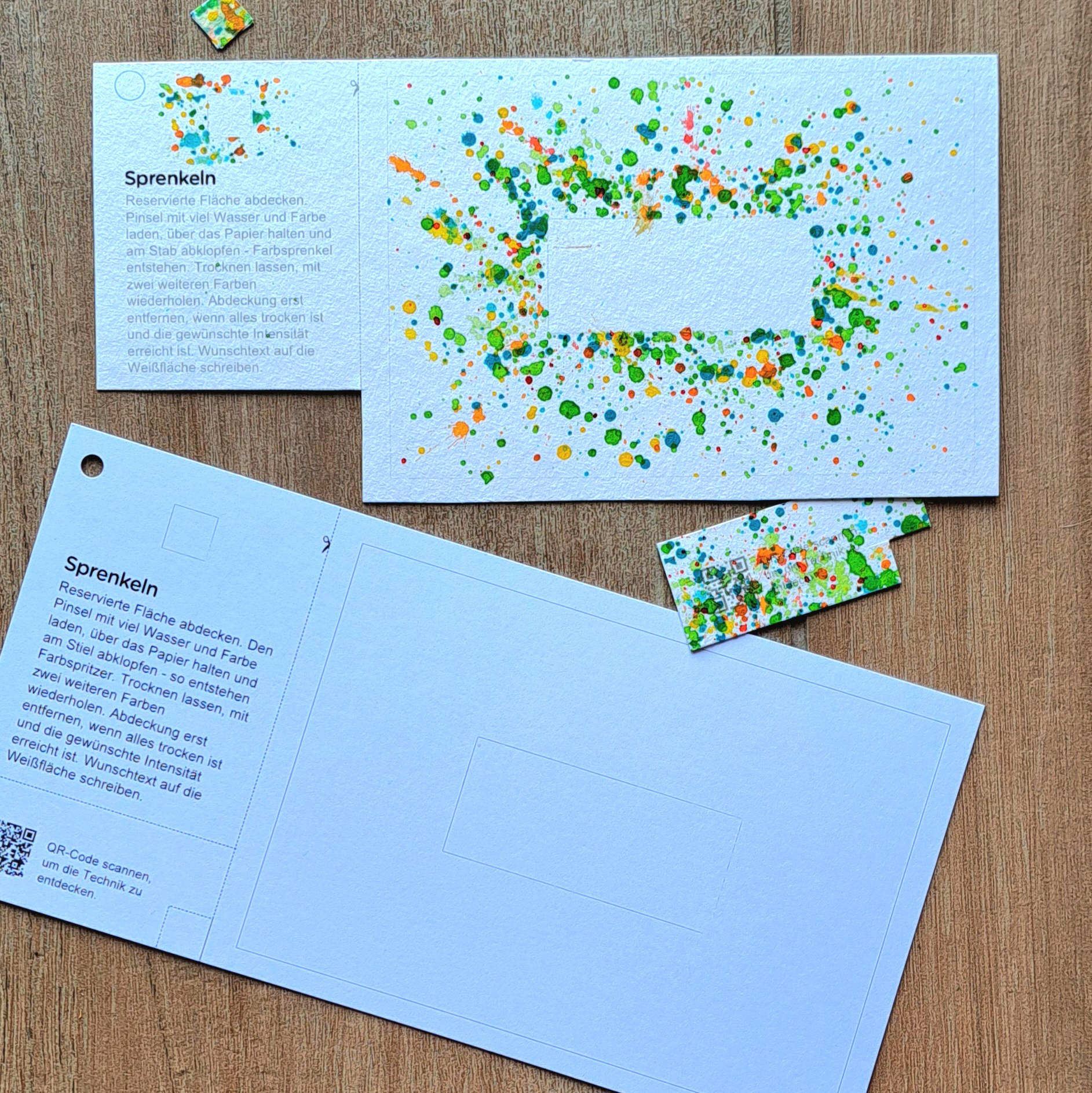 So funktioniert’s: Jede Postkarte enthält: Eine kurze Anleitung Einen QR-Code mit Demo und zusätzlichen Tipps Eine kleine Übung Eine "große" Übung direkt auf der Postkarte