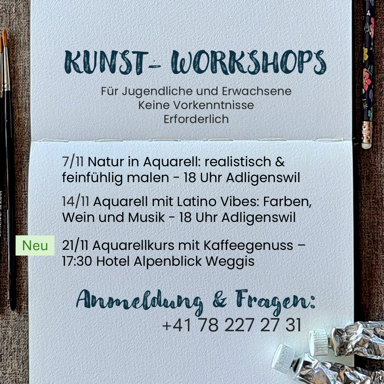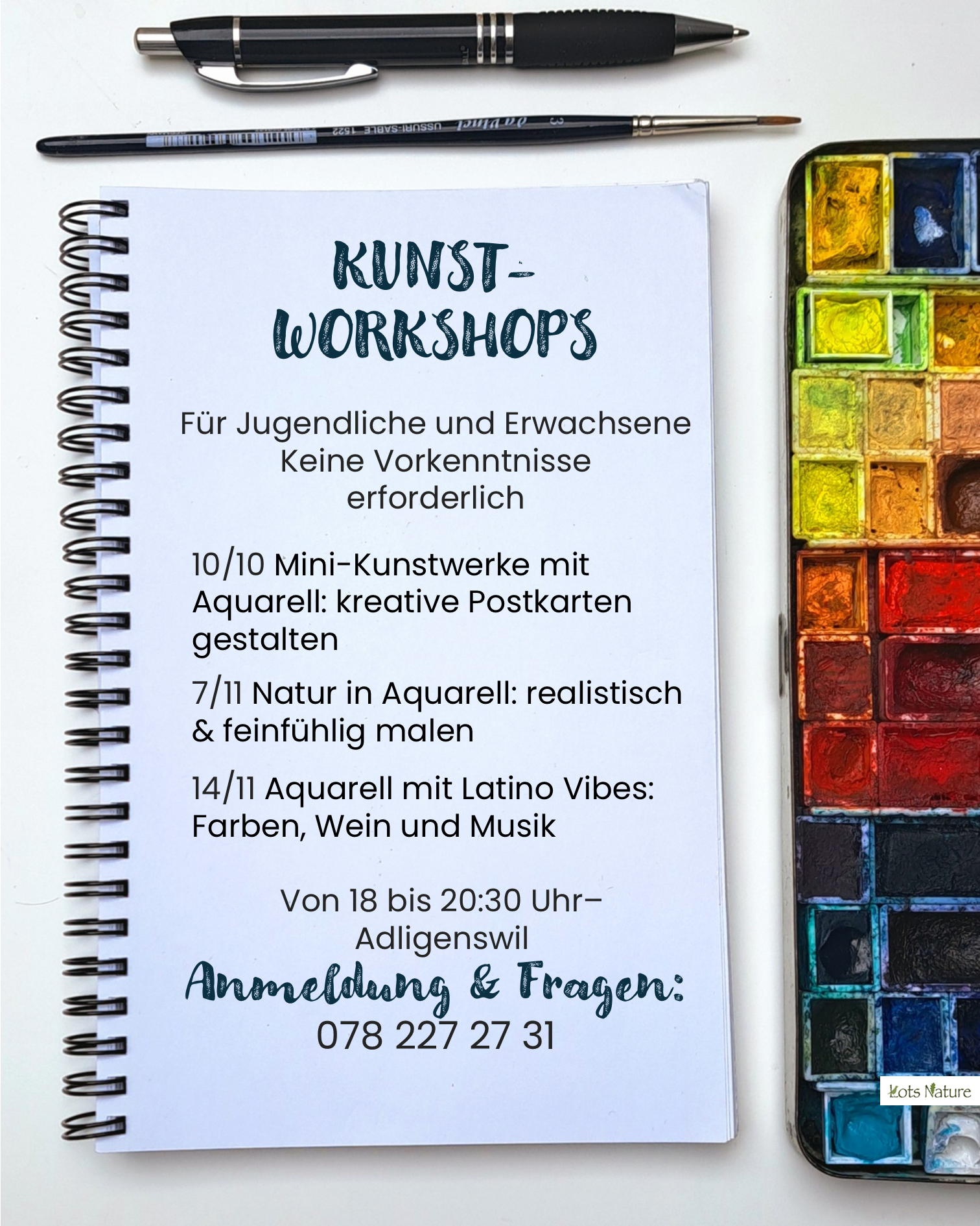 Ich liebe es, mit Aquarellfarben zu malen und noch mehr liebe ich es, diese Freude weiterzugeben. In meinen Workshops geht es nicht um Perfektion, sondern um Spaß, Entspannung und kreative Entdeckungen.